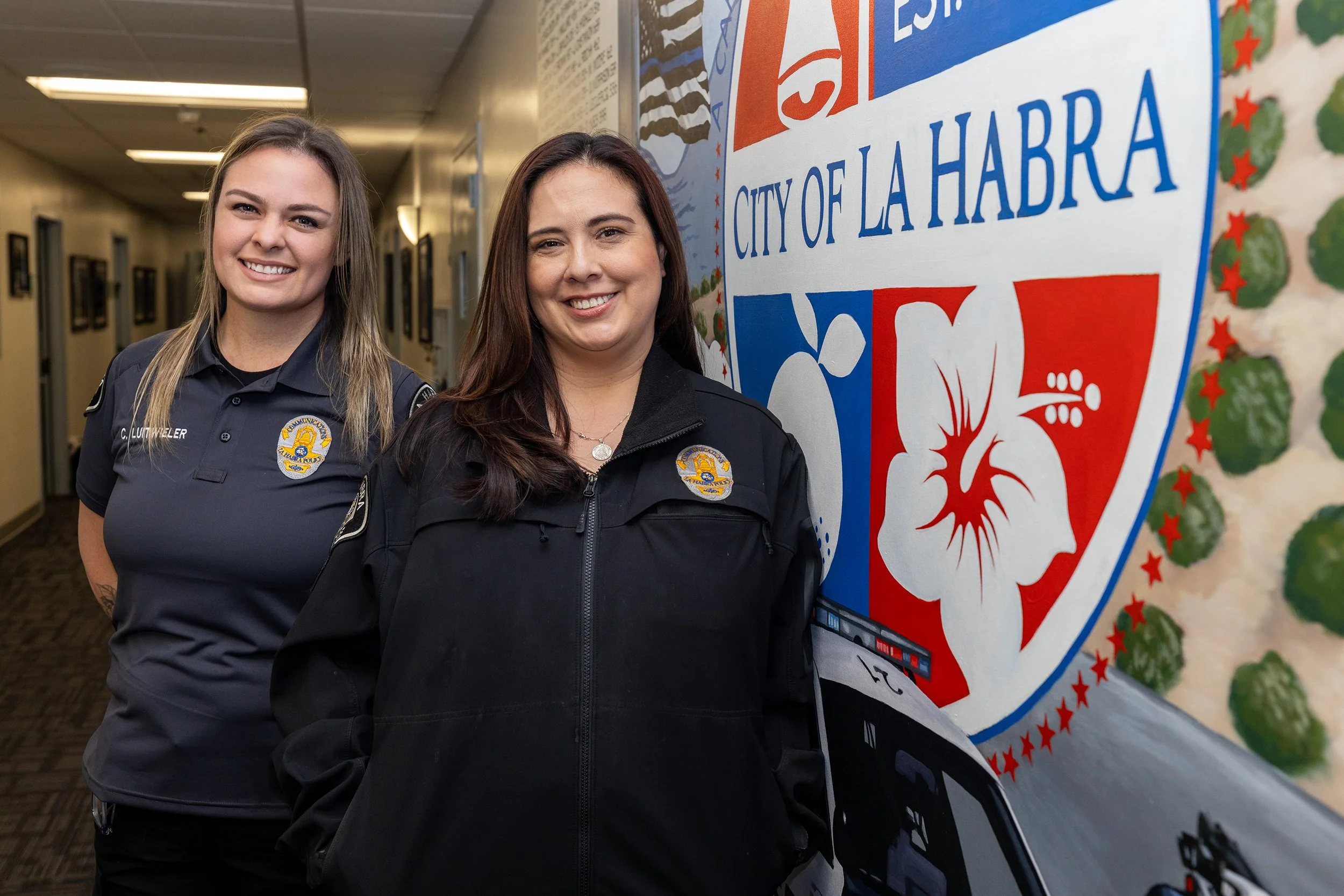 La Habra Police Department’s Public Safety Dispatchers and Communications Operators Chelsea Luitwieler, left, and Christina Martinez, right.