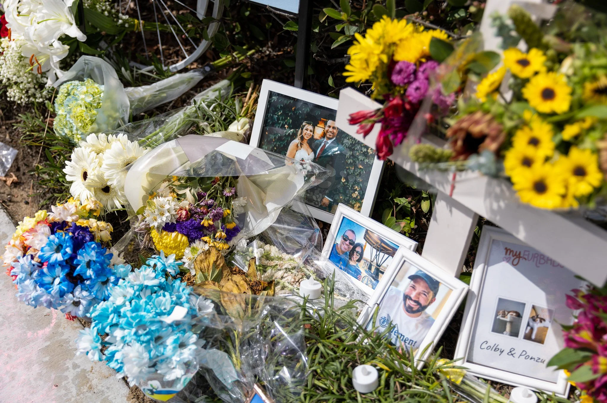 A memorial along Jamboree Road honoring Bicyclist Randy Cintron, 43, who was struck and killed Sunday, Sept. 11, in a hit-and-run crash in Newport Beach.