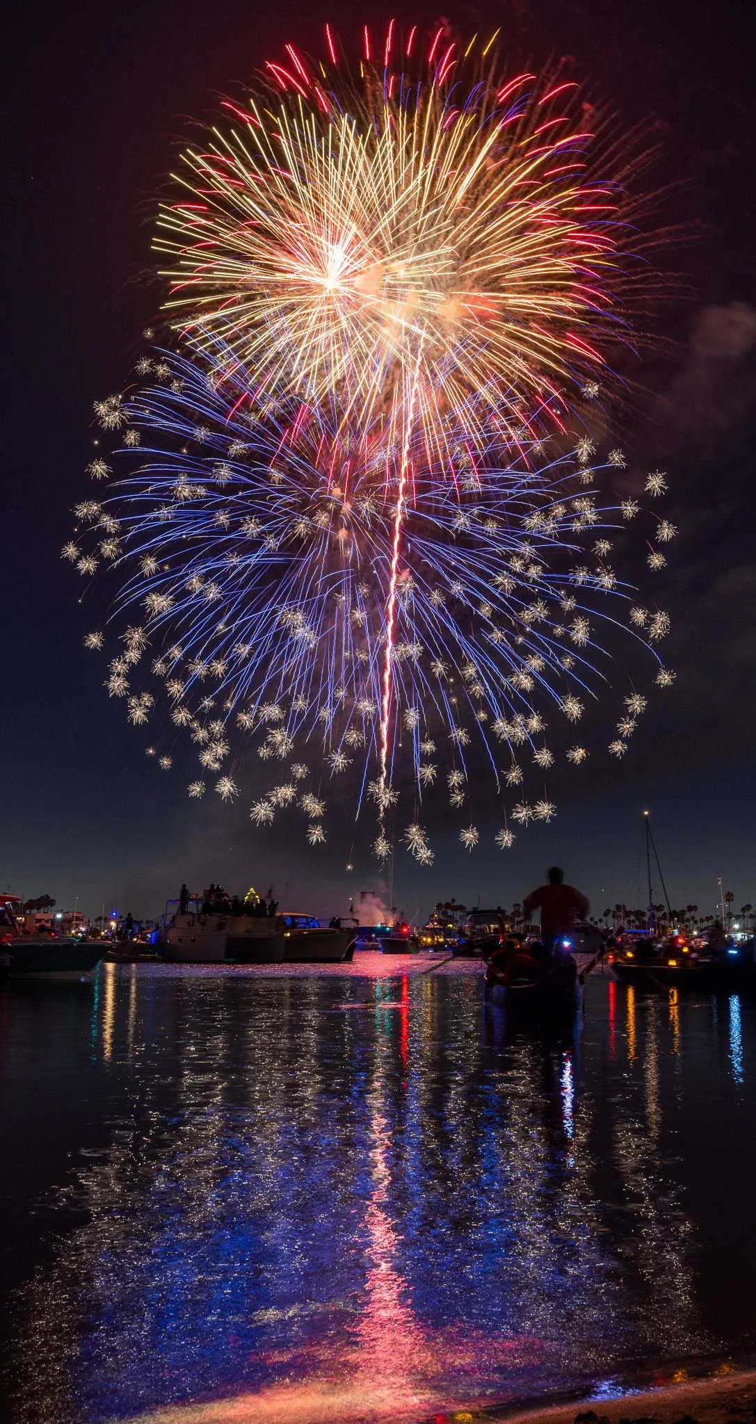 Gondolas and boats float near the Peninsula for prime viewing of the Big Bang on the Bay fireworks show in Long Beach on Sunday, July 3, 2022.