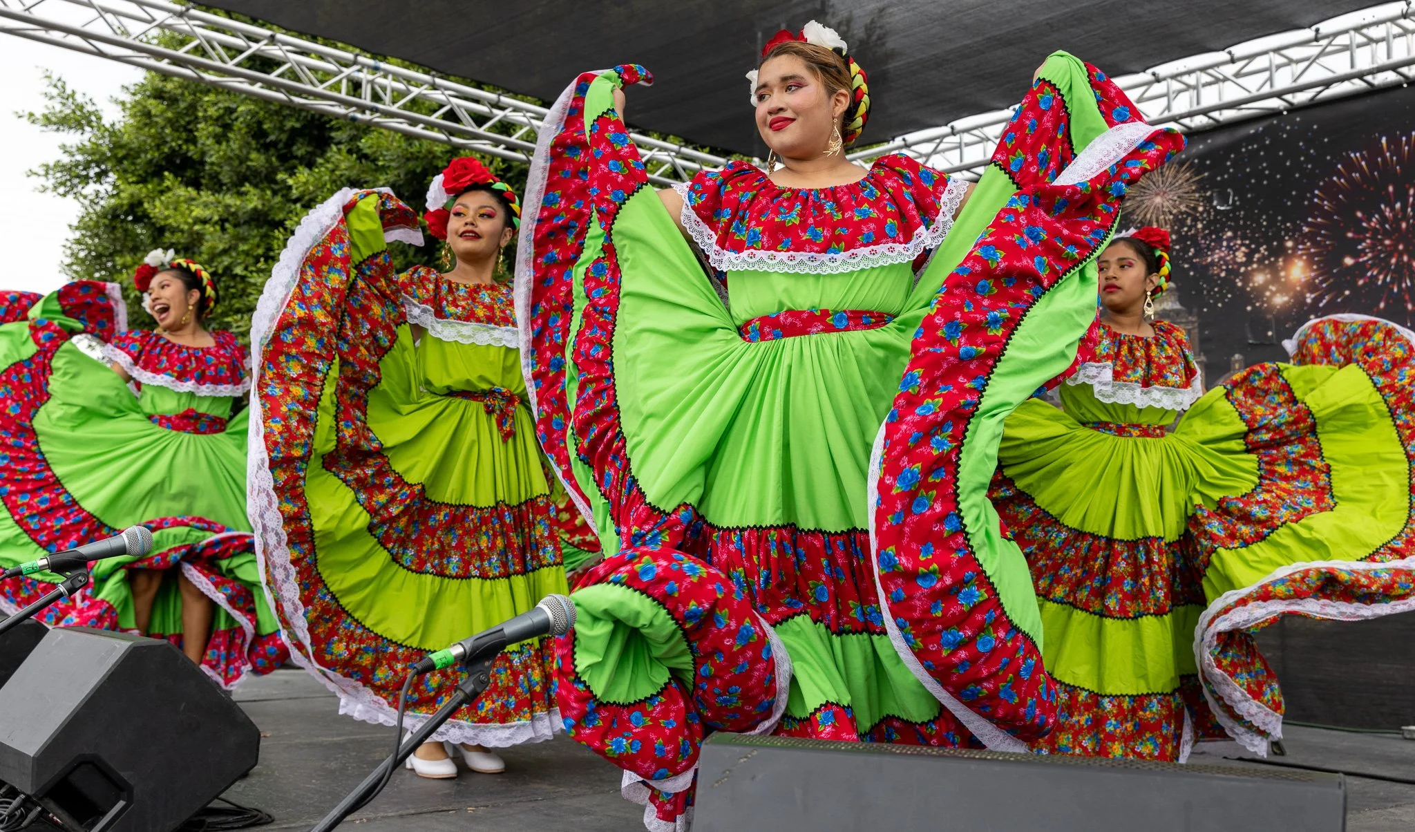 The ballet folklorico group Nuevo Amanecer takes the stage during the Fiestas Patrias carnival held at the Anaheim Indoor Marketplace