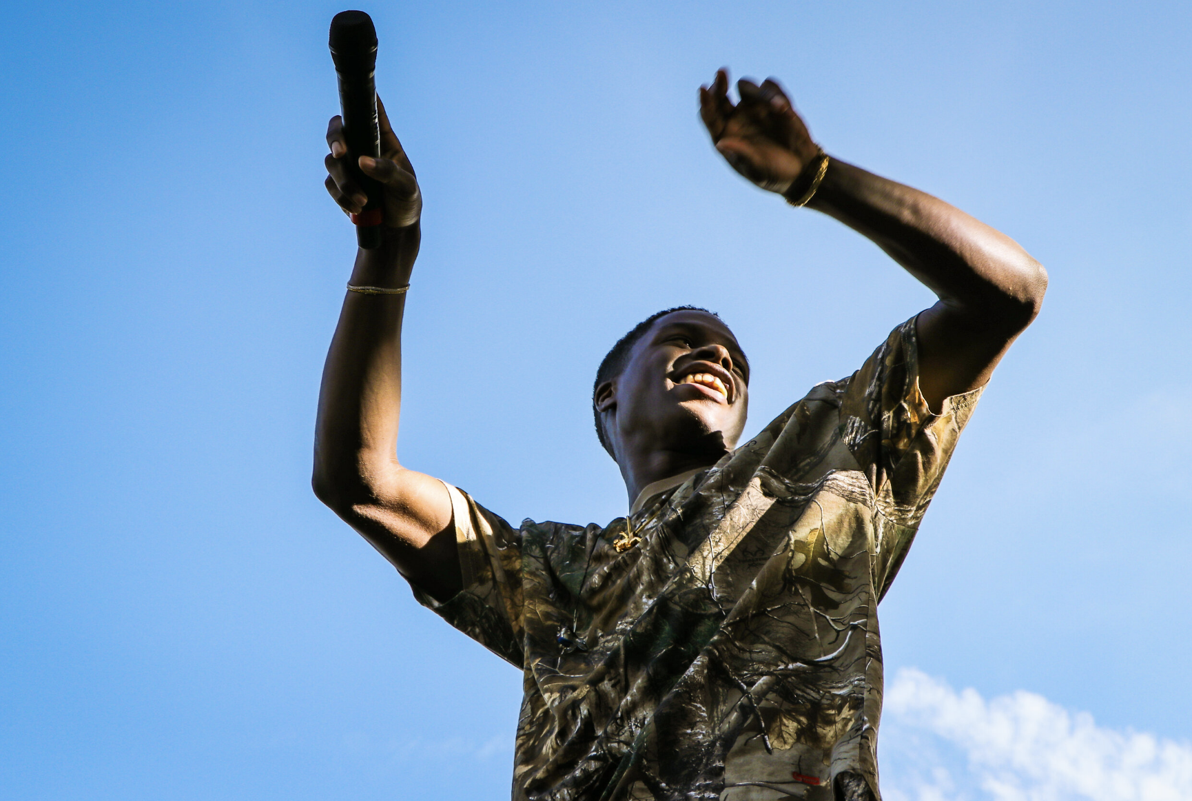 Daniel Caesar, a 24-year-old R&B/soul singer-songwriter, raises his microphone for the audience to sing the lyrics to his song, Best Part.