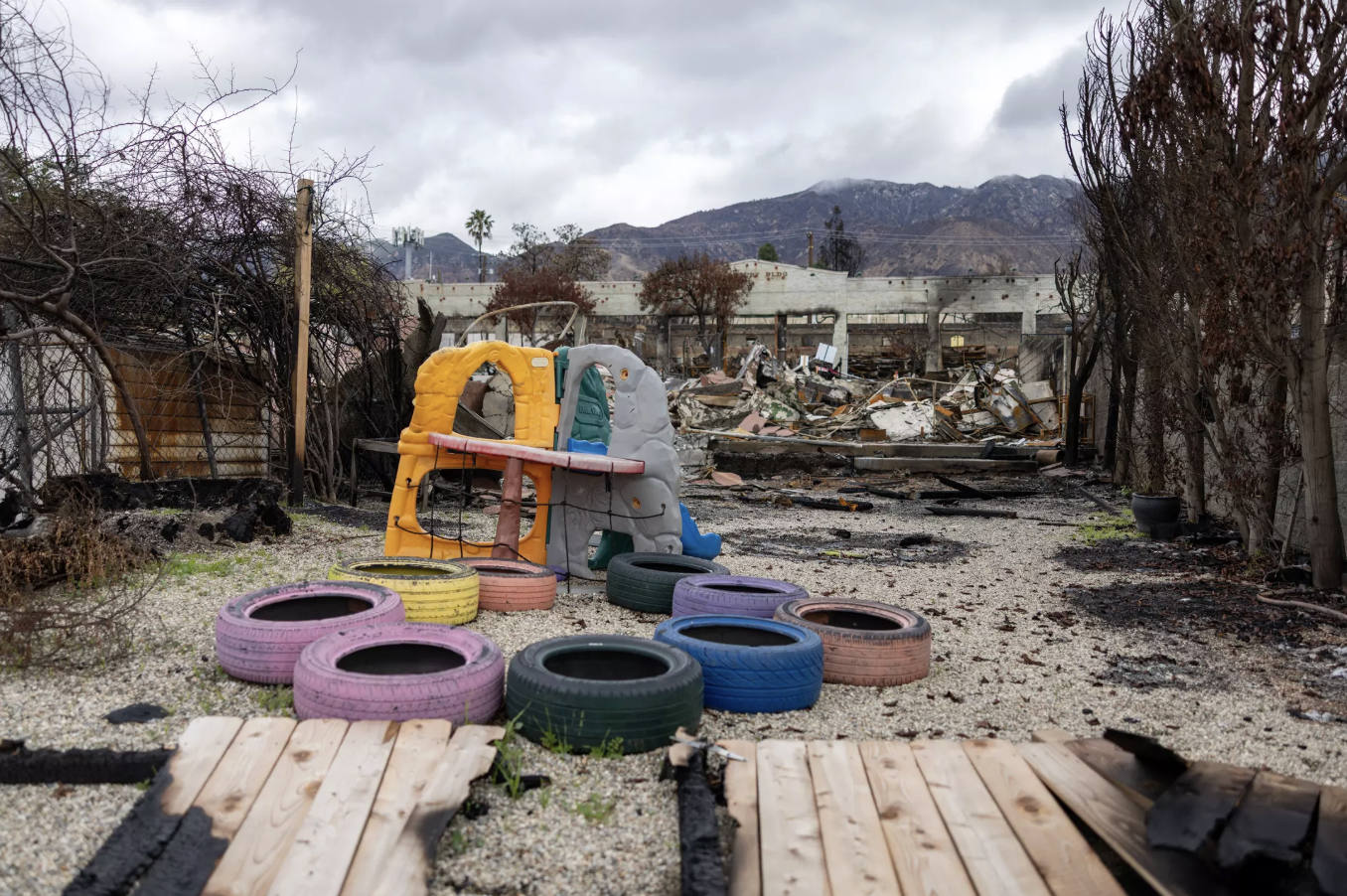 Rayuela Uno, the Spanish immersion school’s original campus, was destroyed by the Eaton fire in early January. For De Los/LA Times story: Eaton fire shut down this Spanish immersion school’s two campuses. But classes are still in session