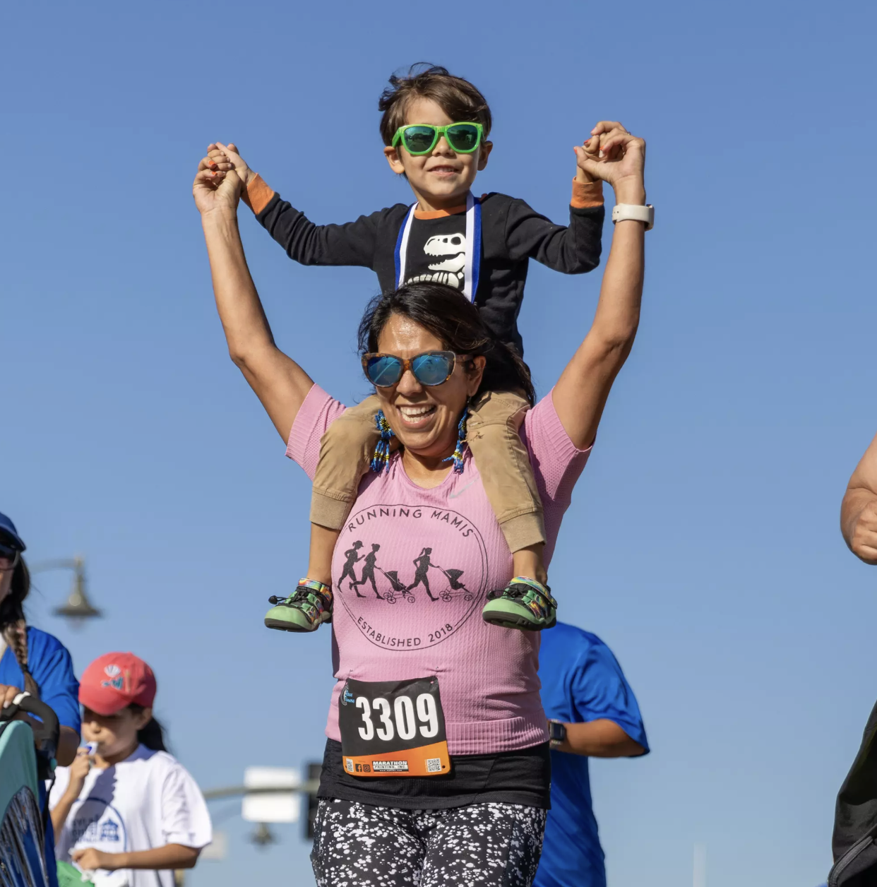 Lupe Gonzalez runs the Boyle Heights 5K with her son Mateo Henkels, 3. For De Los/LA Times story: From 3 to 89, runners take to the streets to celebrate a healthier Boyle Heights